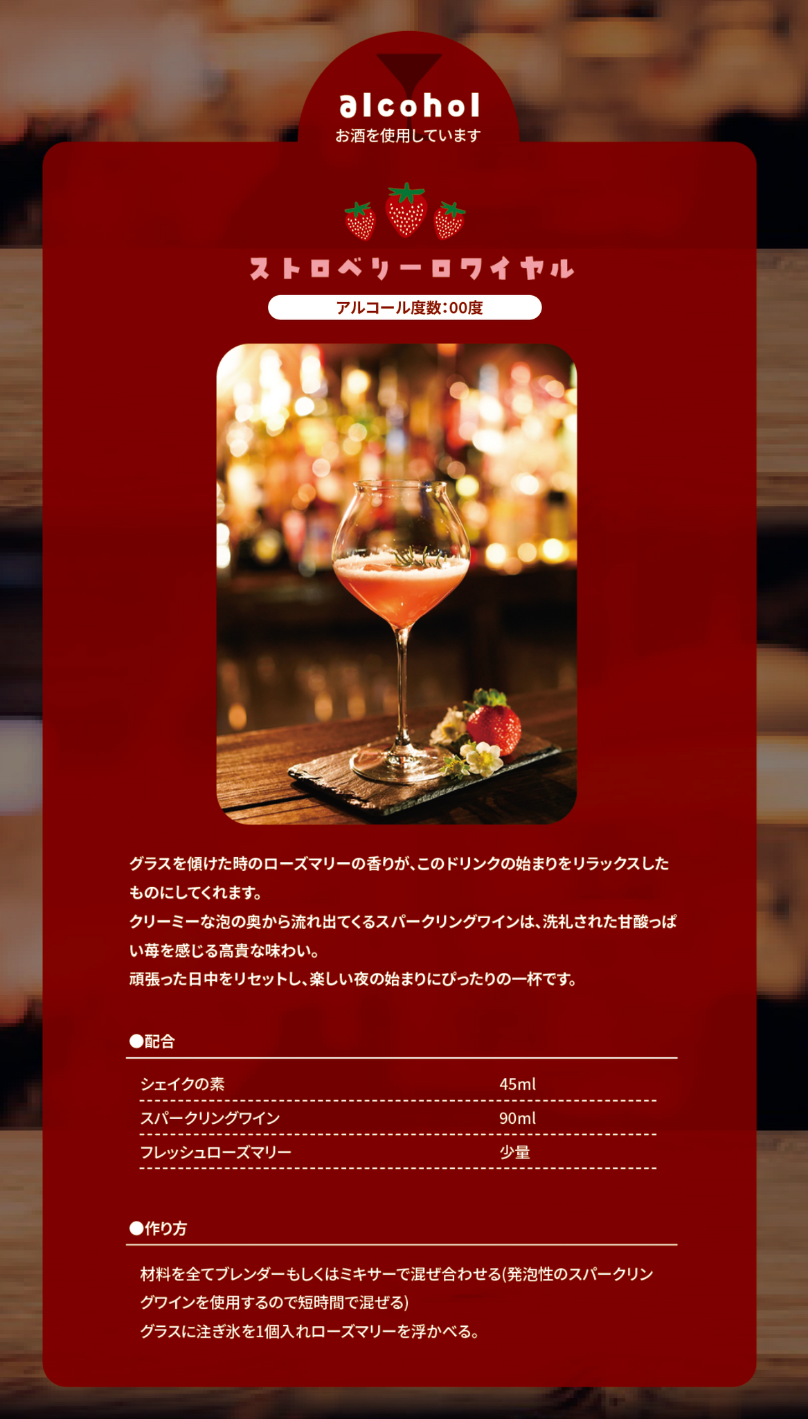 西岡さんの苺シェイクの素を使った「アジアンカクテルチャンピオンシップマカオ大会」優勝バーテンダーのカクテル他、スイーツやソフトドリンクのオリジナルレシピを紹介!